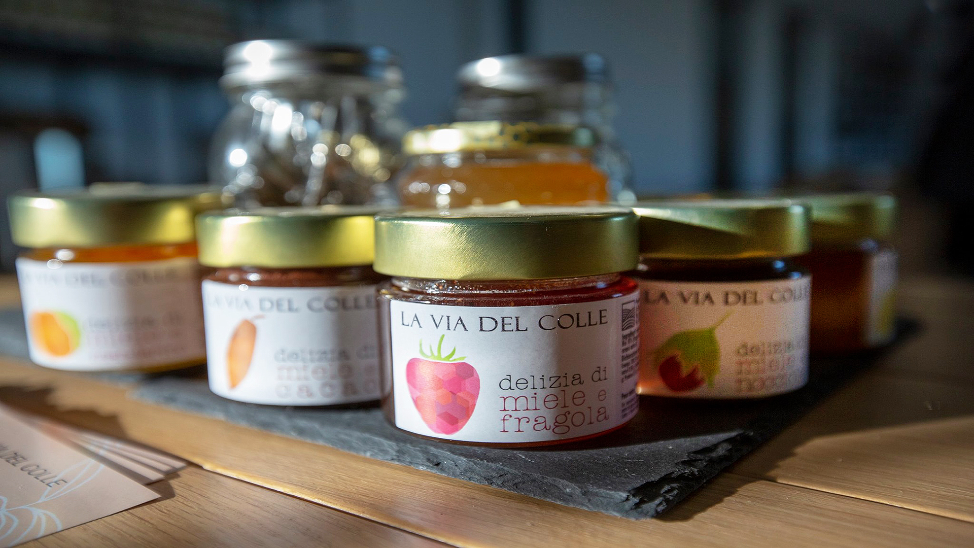 Produzione: Confetture, conserve, miele, passata, creme salate, sott’oli, vini, grano, farina e prodotti da forno, olio e tartufo